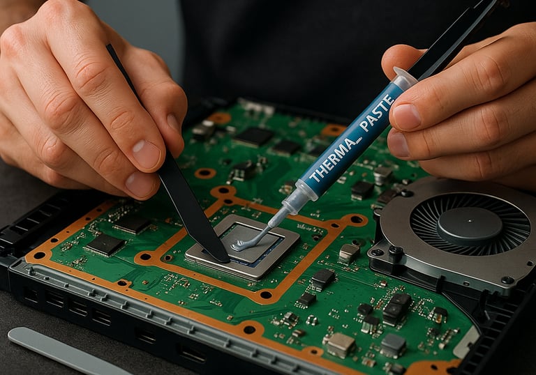 Substituição da pasta térmica para evitar superaquecimento e prolongar a vida útil do console.