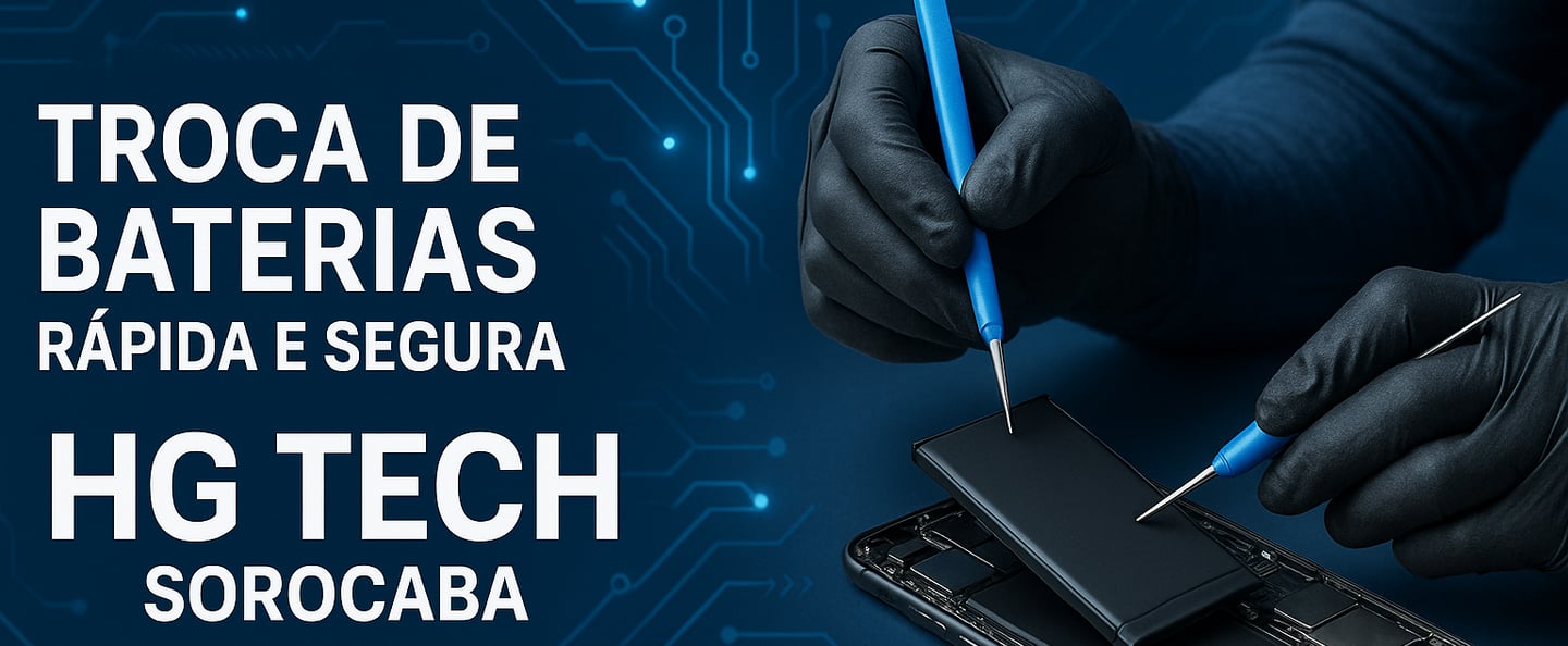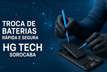 Serviço especializado em troca de bateria para celulares Samsung, Motorola, Xiaomi, Apple e mais.